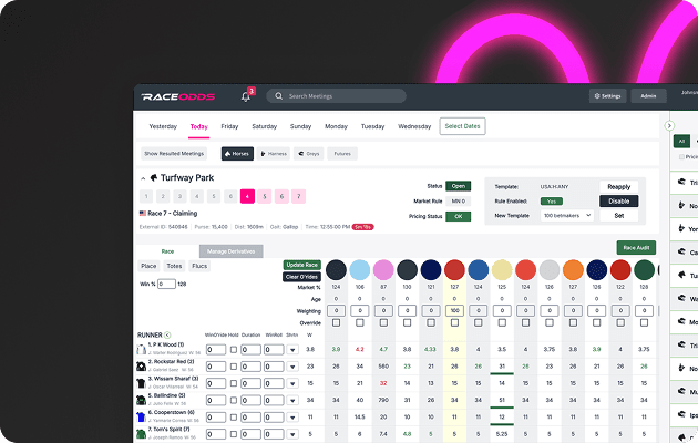 The most complete, high-performance racing solution available. From pricing and data to frontend experiences and risk management, we deliver a flexible, scalable ecosystem that meets your operational needs.